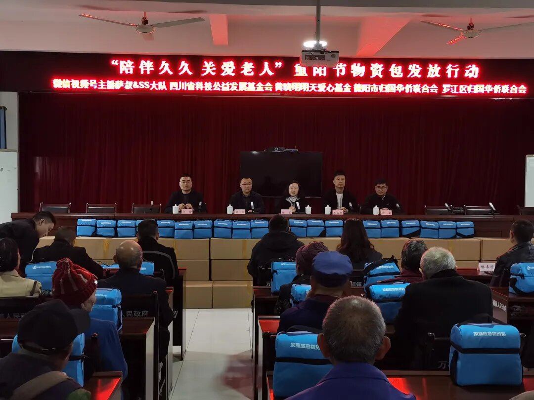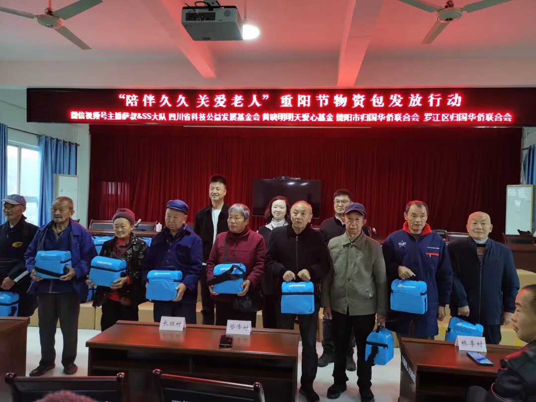 10月24日,德阳市侨联联合四川省科技公益发展基金会在德阳市中江县万福镇开展“陪伴久久 关爱老人”重阳节物资包发放行动,现场捐赠398套爱心物资,精准送达到需要帮助的老人手中。德阳市侨联驻会副主席兼秘书长杨茗,四川省科技公益发展基金会副理事长、秘书长李嘉辉,中江县委统战部副部长许坤,中江县罗江区侨联主席何骏出席活动,中江县万福镇相关负责人及50余名受捐赠民众代表参加活动。