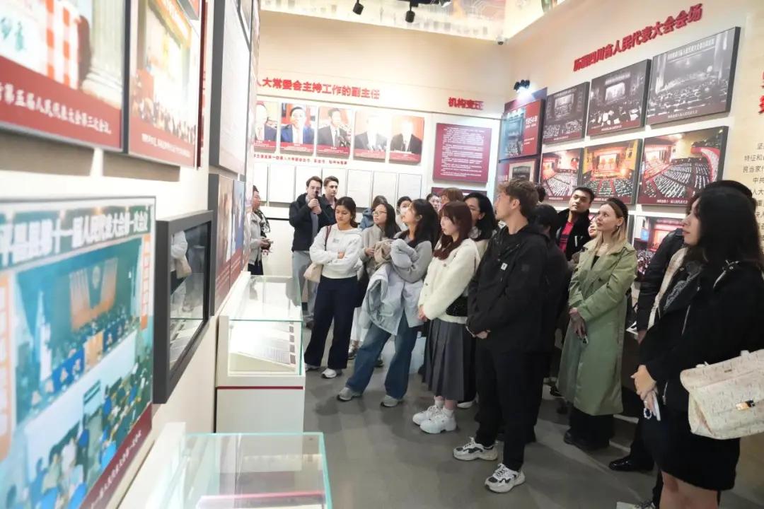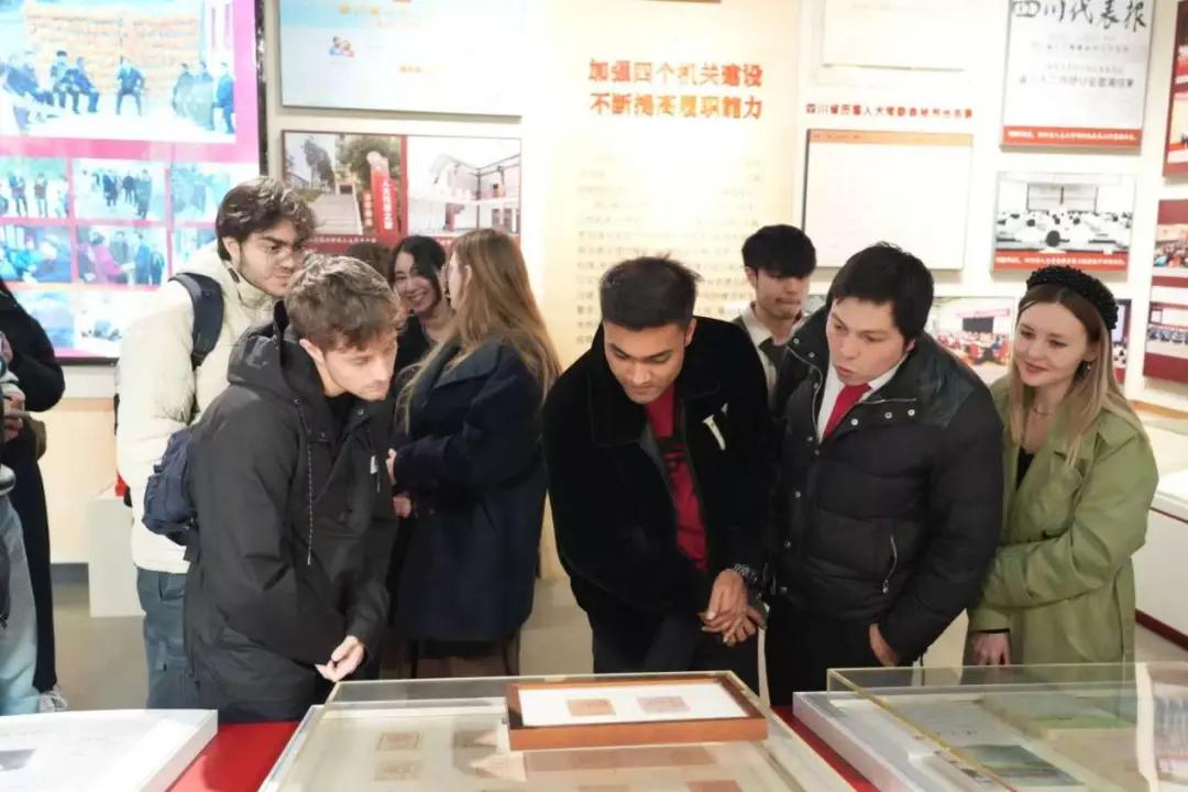 在讲解员带领下,留学生们参观了四川省人大历史陈列馆。大量珍贵史料、档案文献与实物展品,展示了四川地方人大制度从确立到发展、从探索到成熟的历史进程。面对五十年代选票、基层流动票箱、历届大会文献以及对外交往重要档案,留学生们不断提问,工作人员耐心细致地解释,现场学习氛围浓厚。