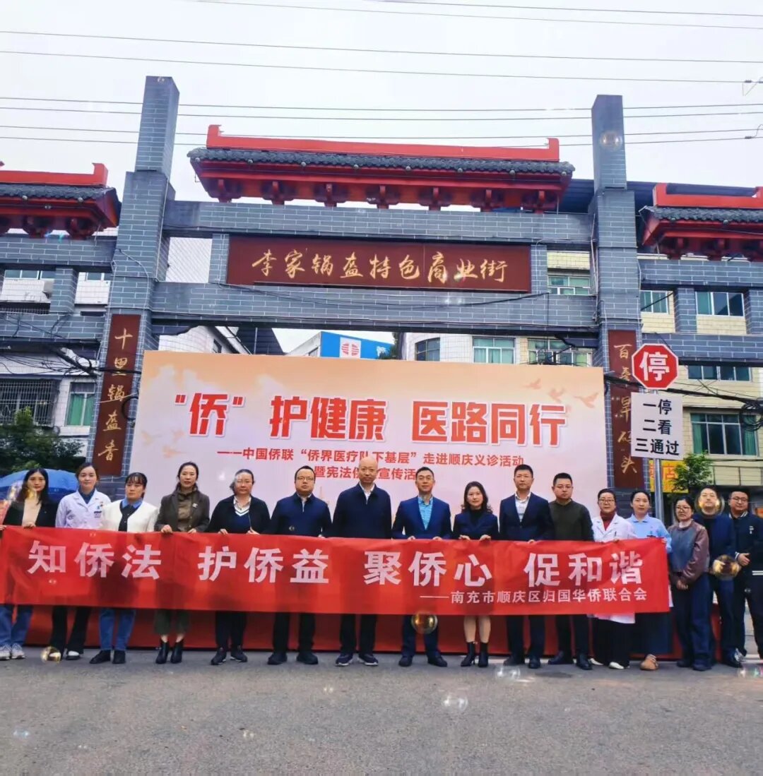 10月29日上午,“侨”护健康,医路同行——中国侨联“侨界医疗队下基层”走进顺庆义诊活动暨宪法侨法宣传活动在南充市顺庆区李家镇特色锅盔商业街举行。南充市侨联主席张德兵宣布活动启动,南充市顺庆区委常委朱静出席并讲话。