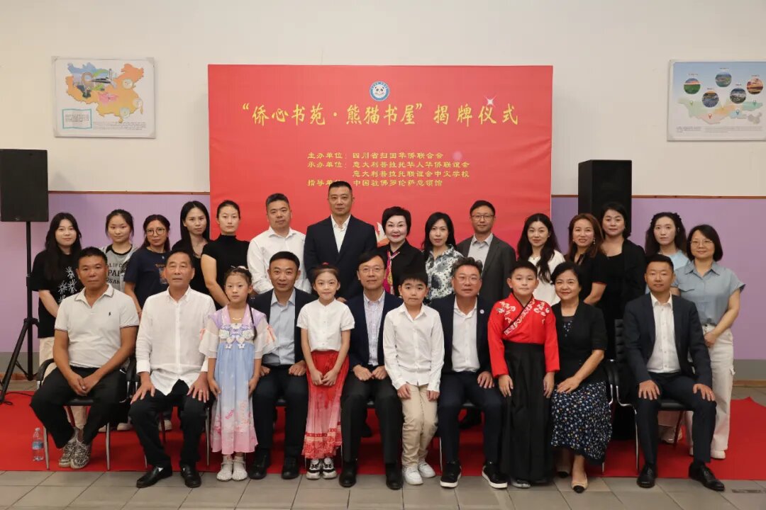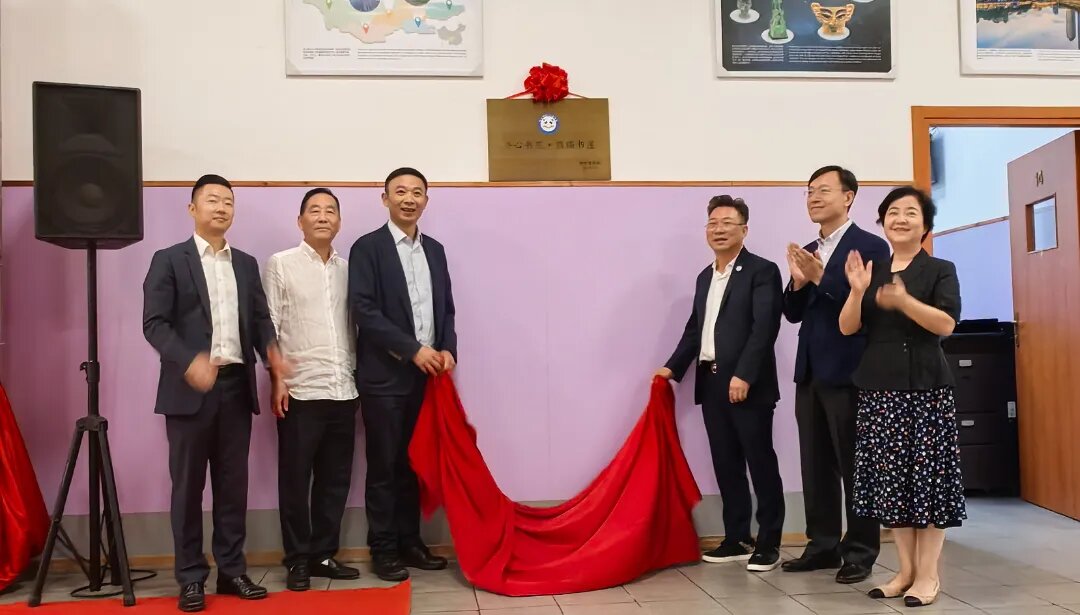 中国驻佛罗伦萨总领事馆代总领事管仲奇出席普拉托“侨心书苑 熊猫书屋”揭牌仪式