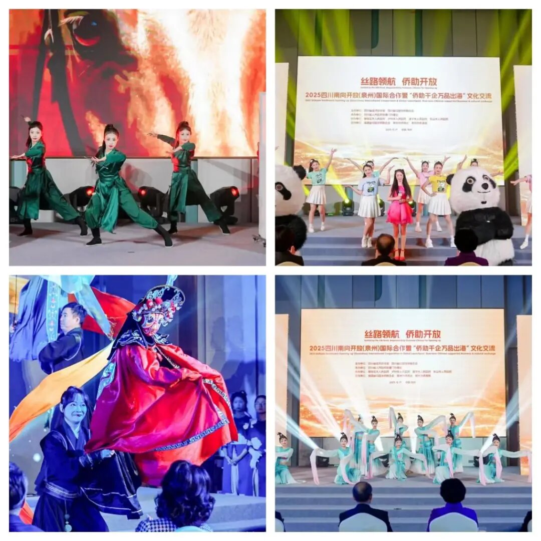 在活动同期举行的“亲情中华”主题文艺演出前,四川省侨联主席杨东登台致欢迎辞。他表示,海外侨胞和归侨侨眷是推动四川经济发展、科技创新和对外开放的重要力量,目前在川侨资企业已超过8000家,2024年侨商投资占四川新设外资企业比例超65%。四川始终高度重视侨务工作,持续健全政务、金融、法律等服务保障体系,让侨商诉求解决实现 “一站直达”。此次对接会是川闽侨务合作的生动实践,希望以侨为桥,推动泉州 “泉品出海” 的成功经验与四川产业优势深度结合,助力四川特色优势产品、地理标志产品及欠发达县域特色产业拓展南向市场,让更多 “川字号” 产品通过侨界网络走向全球,同时吸引更多侨资侨智参与四川产业建圈强链,为四川与东盟、RCEP 成员国等南向国家(地区)的合作注入新动能。杨东还表示,四川将始终秉持开放包容的姿态,为海内外侨商在川发展提供最优环境、最强保障。