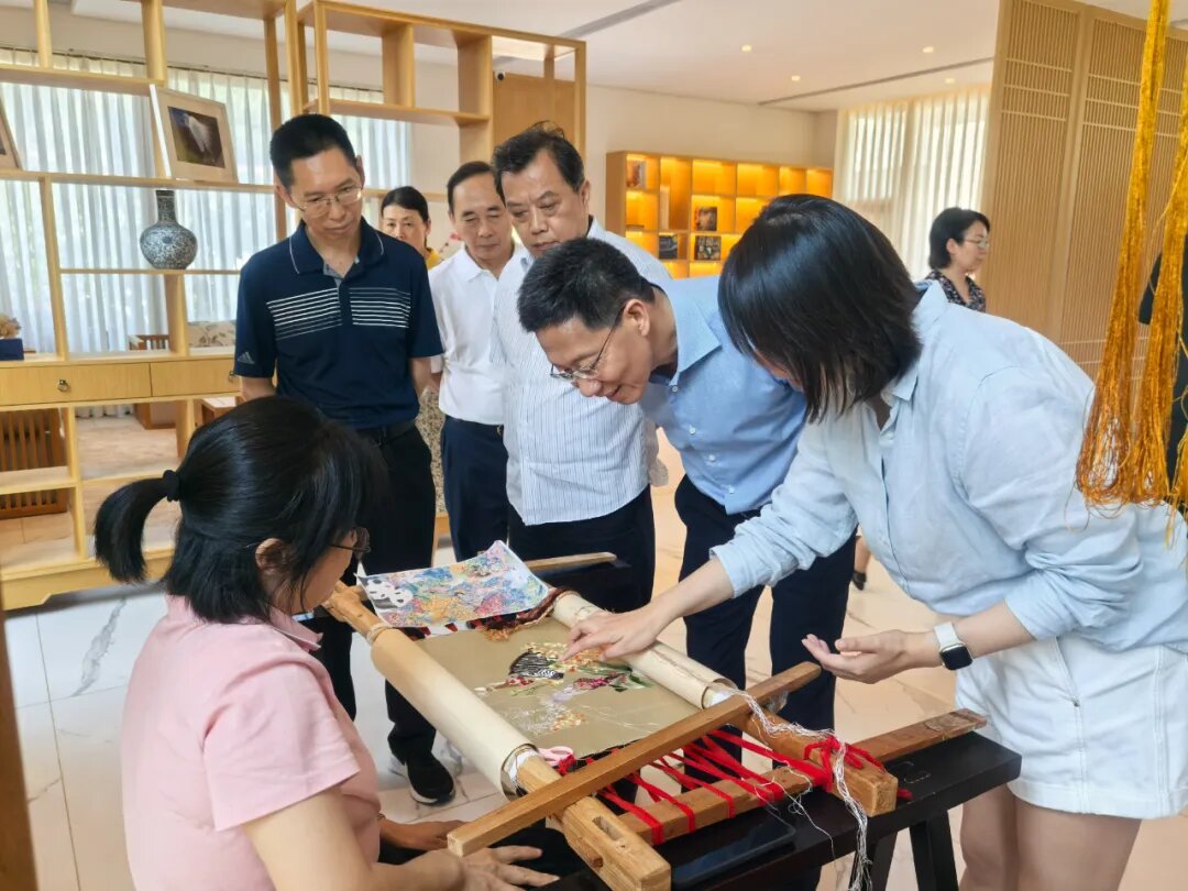 调研组在绵阳天虹丝绸有限责任公司调研归国留学人员蚕桑传统特色产业打造情况。桑锦 摄